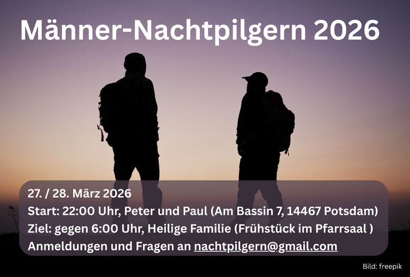 Start ist am 27. März um 22:00 Uhr in Potsdam. Den Abschluss bildet am 28. März gegen 6:00 Uhr ein gemeinsames Frühstück im Pfarrsaal der Heiligen Familie.