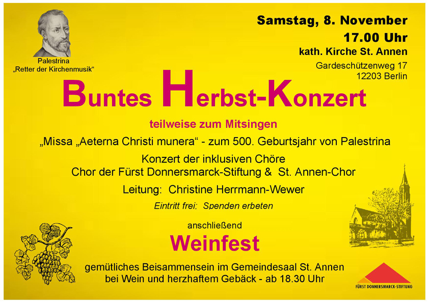 Konzert (teilweise) zum Mitsingen – im Anschluss Weinfest in St. Annen